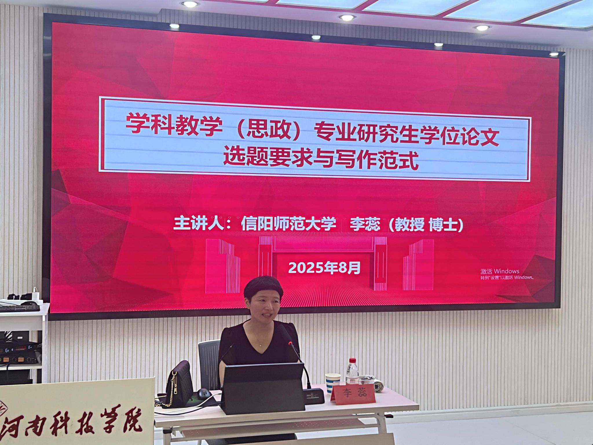 为加强研究生导师队伍建设,提升导师指导研究生学位论文撰写能力,8月28日上午,马克思主义学院在零号楼809会议室举办研究生导师培训会,邀请信阳师范大学淮河校区人文学部主任李蕊教授作专题报告,学院党政领导班子和全体专兼职导师参加培训会。会议由副院长张希中主持。