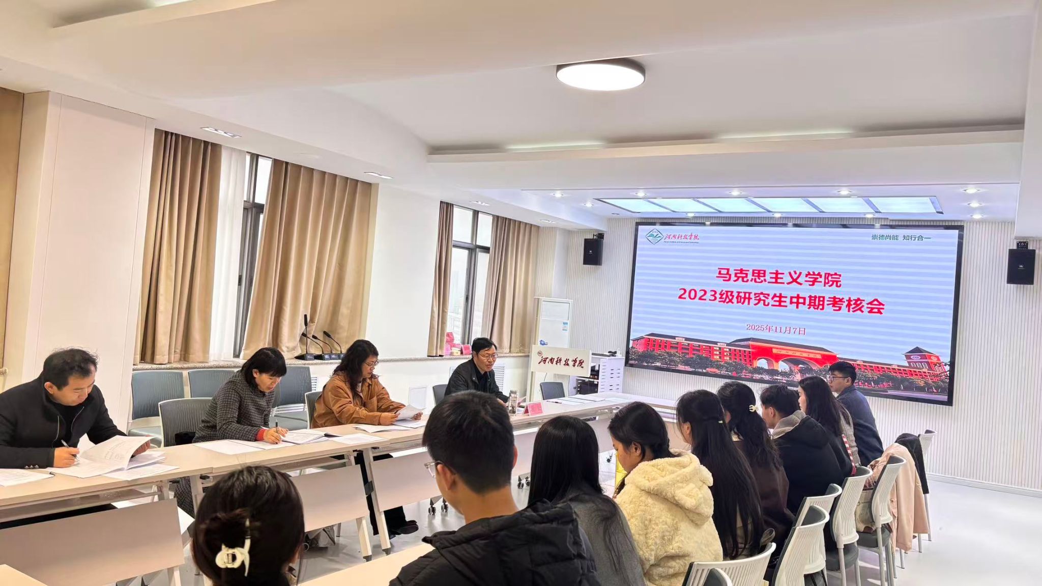 2025年11月7日,马克思主义学院在零号楼809会议室举行2023级研究生中期考核汇报会。考核组由张希中、孙喜英、黄瑞新、徐俊蕾四位研究生导师组成。2023级11名研究生参加考核并汇报。考核会由张希中主持。