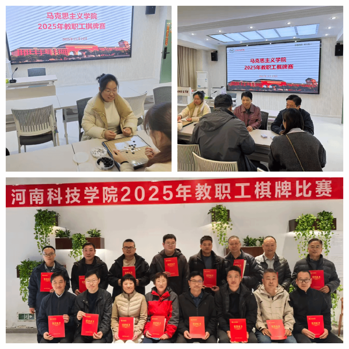 11月14日下午在809会议室举办2025年教职工棋牌赛学院预选赛,共有五子棋和双升两个项目,经过精彩的较量,选出三名老师参加学校举办的棋牌赛,并取得了双升比赛第三名的好成绩。