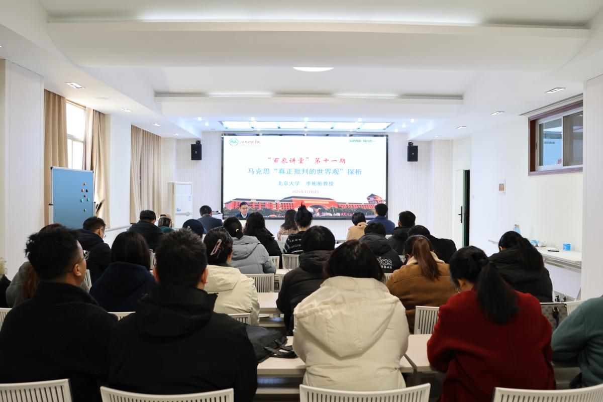 为推动广大师生学好用好马克思主义经典著作,提高马克思主义理论素养,12月5日上午,马克思主义学院开展“百农讲堂”第十一期活动,邀请北京大学马克思主义学院研究员、博士生导师李彬彬作《马克思“真正批判的世界观”探析》专题讲座。学院领导班子成员、全体思政课教师及全日制研究生参会,讲座由副院长张希中主持。