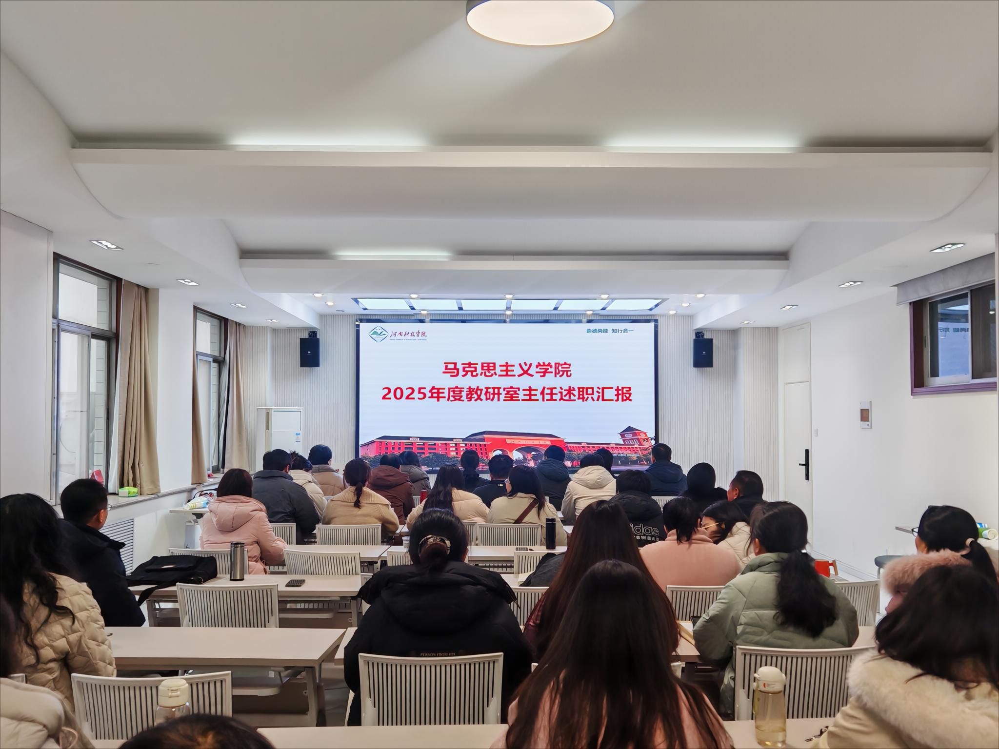 1月19日下午,马克思主义学院在0号楼809会议室召开教研室主任述职大会,会议由王冰蔚院长主持,学院领导班子成员及全体教师参加。
