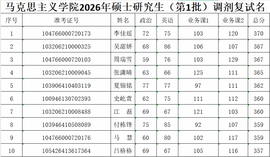 马克思主义学院2026年硕士研究生(第1批)调剂复试名单